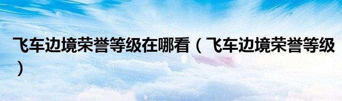关于飞车边境荣誉等级在哪看,飞车边境荣誉等级这个很多人还不知道,今天菲菲来为大家解答以上的问题,现在让我们一起来看看吧!