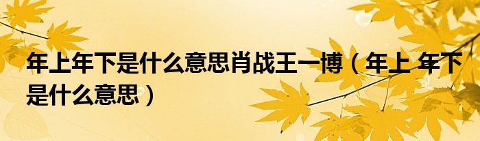 关于年上年下是什么意思肖战王一博,年上 年下是什么意思这个很多人还不知道,今天菲菲来为大家解答以上的问题,现在让我们一起来看看吧!