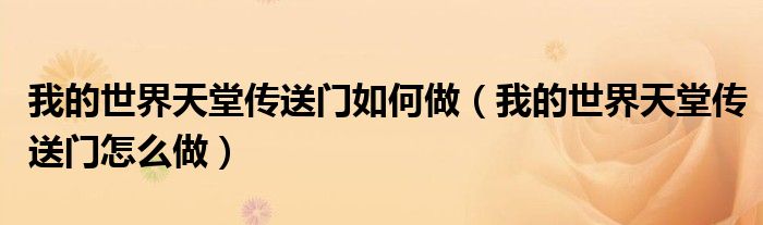 关于我的世界天堂传送门如何做,我的世界天堂传送门怎么做这个很多人还不知道,今天菲菲来为大家解答以上的问题,现在让我们一起来看看吧!