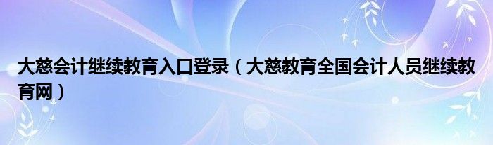 关于大慈会计继续教育入口登录,大慈教育全国会计人员继续教育网这个很多人还不知道,今天菲菲来为大家解答以上的问题,现在让我们一起来看看吧!