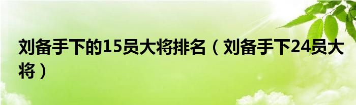 大家好,小晋来为大家解答以下问题,关于刘备手下的15员大将排名,刘备手下24员大将很多人还不知道,今天让我们一起来看看吧!