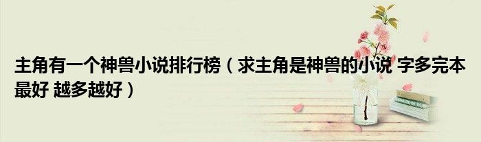 关于主角有一个神兽小说排行榜,求主角是神兽的小说 字多完本最好 越多越好这个很多人还不知道,今天菲菲来为大家解答以上的问题,现在让我们一起来看看吧!