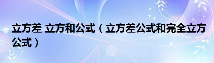 关于立方差 立方和公式,立方差公式和完全立方公式这个很多人还不知道,今天菲菲来为大家解答以上的问题,现在让我们一起来看看吧!