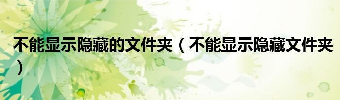 大家好,来宝来为大家解答以下问题,不能显示隐藏的文件夹,不能显示隐藏文件夹很多人还不知道,今天让我们一起来看看吧!