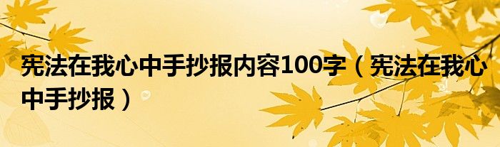 关于宪法在我心中手抄报内容100字,宪法在我心中手抄报这个很多人还不知道,今天菲菲来为大家解答以上的问题,现在让我们一起来看看吧!
