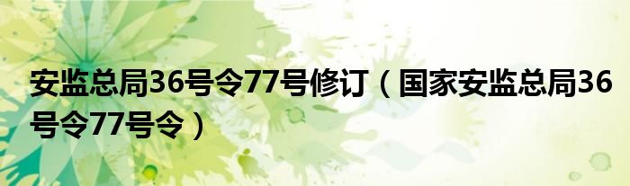关于安监总局36号令77号修订,国家安监总局36号令77号令这个很多人还不知道,今天菲菲来为大家解答以上的问题,现在让我们一起来看看吧!