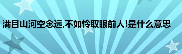 关于满目山河空念远,不如怜取眼前人!是什么意思这个很多人还不知道,今天菲菲来为大家解答以上的问题,现在让我们一起来看看吧!