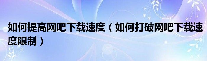 关于如何提高网吧下载速度,如何打破网吧下载速度限制这个很多人还不知道,今天菲菲来为大家解答以上的问题,现在让我们一起来看看吧!