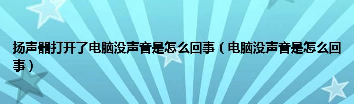 大家好,来宝来为大家解答以下问题,扬声器打开了电脑没声音是怎么回事,电脑没声音是怎么回事很多人还不知道,今天让我们一起来看看吧!