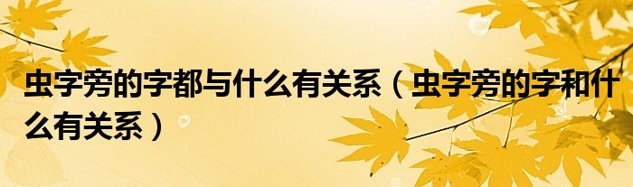 大家好,小晋来为大家解答以下问题,关于虫字旁的字都与什么有关系,虫字旁的字和什么有关系很多人还不知道,今天让我们一起来看看吧!