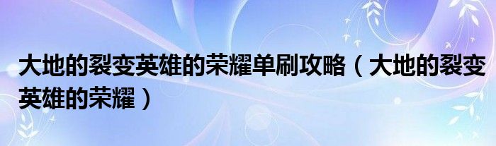 大地的裂变英雄的荣耀单刷攻略,大地的裂变英雄的荣耀很多人还不知道,乐乐来为大家解答以上问题,现在让我们一起来看看吧!