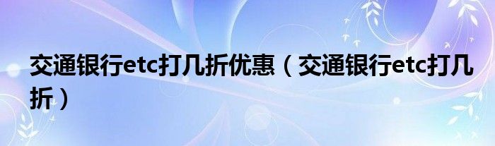 交通银行etc打几折优惠(交通银行etc打几折)