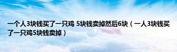 关于一个人3块钱买了一只鸡 5块钱卖掉然后6块,一人3块钱买了一只鸡5块钱卖掉这个很多人还不知道,今天菲菲来为大家解答以上的问题,现在让我们一起来看看吧!