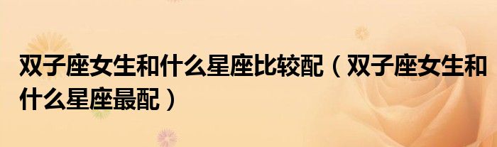 关于双子座女生和什么星座比较配,双子座女生和什么星座最配这个很多人还不知道,今天菲菲来为大家解答以上的问题,现在让我们一起来看看吧!