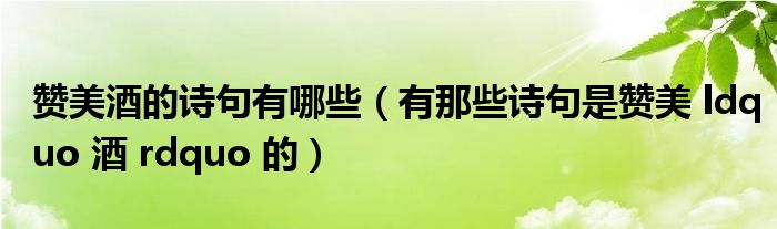 关于赞美酒的诗句有哪些,有那些诗句是赞美 ldquo 酒 rdquo 的这个很多人还不知道,今天菲菲来为大家解答以上的问题,现在让我们一起来看看吧!