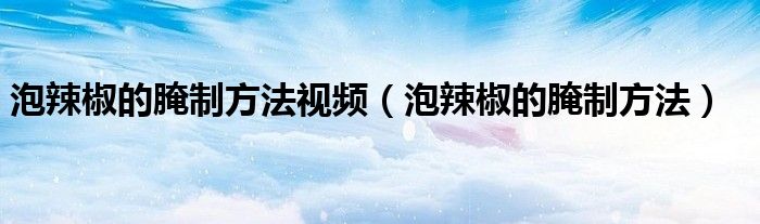 关于泡辣椒的腌制方法视频,泡辣椒的腌制方法这个很多人还不知道,今天菲菲来为大家解答以上的问题,现在让我们一起来看看吧!