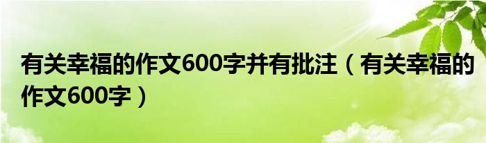关于有关幸福的作文600字并有批注,有关幸福的作文600字这个很多人还不知道,今天菲菲来为大家解答以上的问题,现在让我们一起来看看吧!