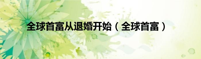 关于全球首富从退婚开始,全球首富这个很多人还不知道,今天菲菲来为大家解答以上的问题,现在让我们一起来看看吧!