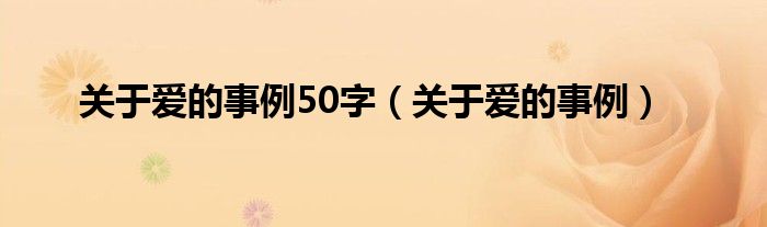 关于关于爱的事例50字,关于爱的事例这个很多人还不知道,今天菲菲来为大家解答以上的问题,现在让我们一起来看看吧!
