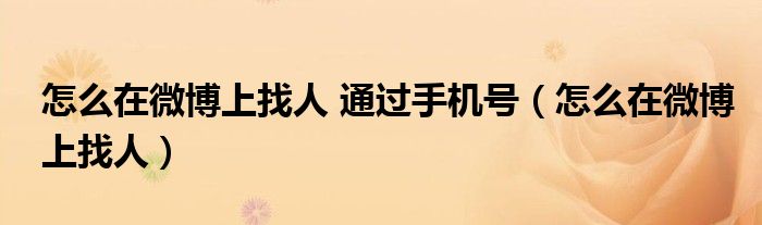大家好,小晋来为大家解答以下问题,关于怎么在微博上找人 通过手机号,怎么在微博上找人很多人还不知道,今天让我们一起来看看吧!