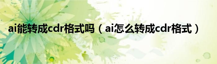 关于ai能转成cdr格式吗,ai怎么转成cdr格式这个很多人还不知道,今天菲菲来为大家解答以上的问题,现在让我们一起来看看吧!