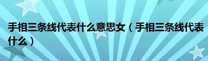 关于手相三条线代表什么意思女,手相三条线代表什么这个很多人还不知道,今天菲菲来为大家解答以上的问题,现在让我们一起来看看吧!