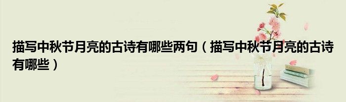 关于描写中秋节月亮的古诗有哪些两句,描写中秋节月亮的古诗有哪些这个很多人还不知道,今天菲菲来为大家解答以上的问题,现在让我们一起来看看吧!
