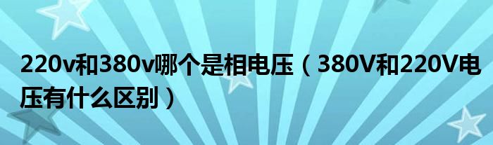 关于220v和380v哪个是相电压,380V和220V电压有什么区别这个很多人还不知道,今天菲菲来为大家解答以上的问题,现在让我们一起来看看吧!