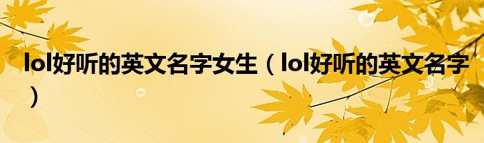 Lol英文姓名本。以上是好听的lol男生/女生游戏名,供大家参考。