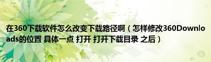 关于在360下载软件怎么改变下载路径啊,怎样修改360Downloads的位置 具体一点 打开 打开下载目录 之后这个很多人还不知道,今天菲菲来为大家解答以上的问题,现在让我们一起来看看吧!