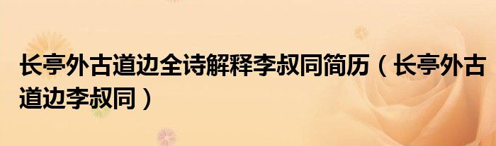 关于长亭外古道边全诗解释李叔同简历,长亭外古道边李叔同这个很多人还不知道,今天菲菲来为大家解答以上的问题,现在让我们一起来看看吧!