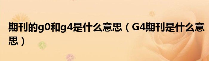 关于期刊的g0和g4是什么意思,G4期刊是什么意思这个很多人还不知道,今天菲菲来为大家解答以上的问题,现在让我们一起来看看吧!
