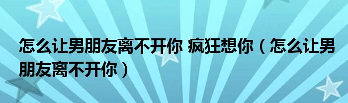 关于怎么让男朋友离不开你 疯狂想你,怎么让男朋友离不开你这个很多人还不知道,今天菲菲来为大家解答以上的问题,现在让我们一起来看看吧!