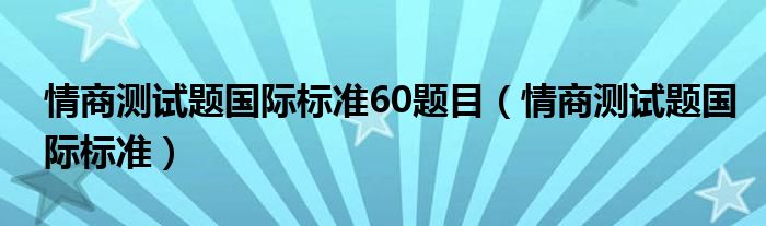 关于情商测试题国际标准60题目,情商测试题国际标准这个很多人还不知道,今天菲菲来为大家解答以上的问题,现在让我们一起来看看吧!