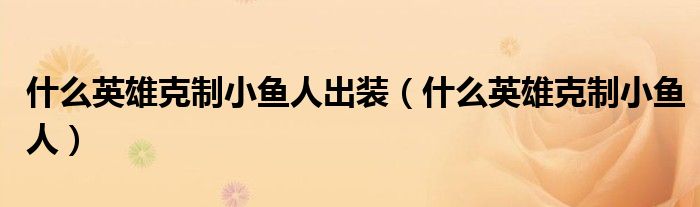 大家好,来宝来为大家解答以下问题,什么英雄克制小鱼人出装,什么英雄克制小鱼人很多人还不知道,今天让我们一起来看看吧!