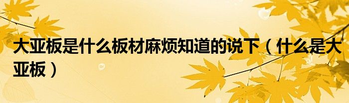 关于大亚板是什么板材麻烦知道的说下,什么是大亚板这个很多人还不知道,今天菲菲来为大家解答以上的问题,现在让我们一起来看看吧!