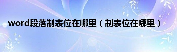 关于word段落制表位在哪里,制表位在哪里这个很多人还不知道,今天菲菲来为大家解答以上的问题,现在让我们一起来看看吧!