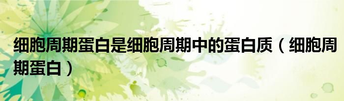 关于细胞周期蛋白是细胞周期中的蛋白质,细胞周期蛋白这个很多人还不知道,今天菲菲来为大家解答以上的问题,现在让我们一起来看看吧!