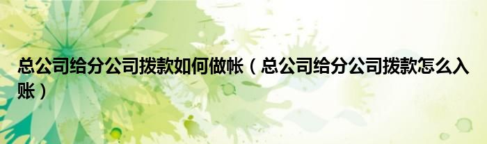 关于总公司给分公司拨款如何做帐,总公司给分公司拨款怎么入账这个很多人还不知道,今天菲菲来为大家解答以上的问题,现在让我们一起来看看吧!