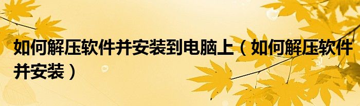 关于如何解压软件并安装到电脑上,如何解压软件并安装这个很多人还不知道,今天菲菲来为大家解答以上的问题,现在让我们一起来看看吧!