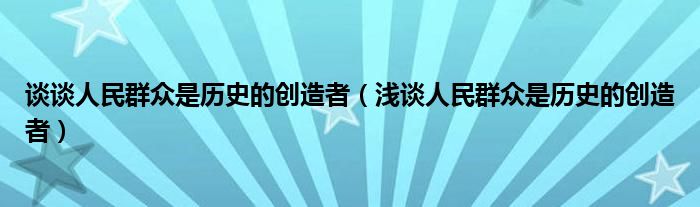关于谈谈人民群众是历史的创造者,浅谈人民群众是历史的创造者这个很多人还不知道,今天菲菲来为大家解答以上的问题,现在让我们一起来看看吧!