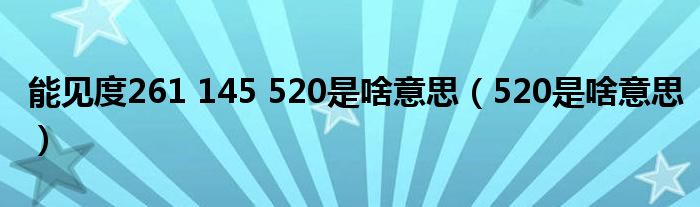 关于能见度261 145 520是啥意思,520是啥意思这个很多人还不知道,今天菲菲来为大家解答以上的问题,现在让我们一起来看看吧!