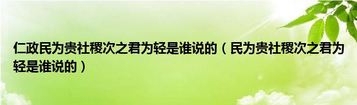 关于仁政民为贵社稷次之君为轻是谁说的,民为贵社稷次之君为轻是谁说的这个很多人还不知道,今天菲菲来为大家解答以上的问题,现在让我们一起来看看吧!
