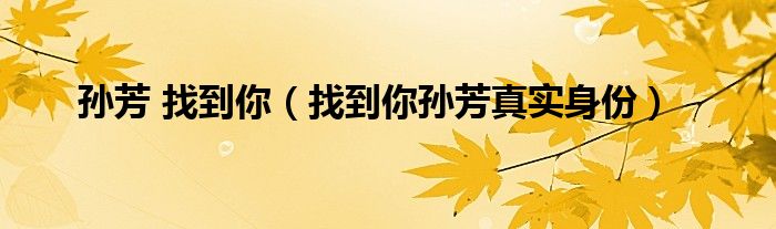 大家好,小晋来为大家解答以下问题,关于孙芳 找到你,找到你孙芳真实身份很多人还不知道,今天让我们一起来看看吧!