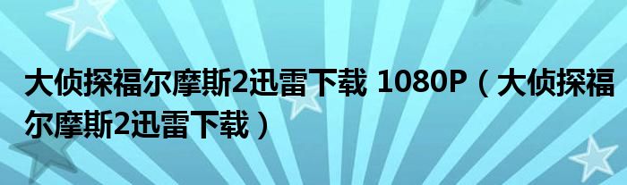 关于大侦探福尔摩斯2迅雷下载 1080P,大侦探福尔摩斯2迅雷下载这个很多人还不知道,今天菲菲来为大家解答以上的问题,现在让我们一起来看看吧!