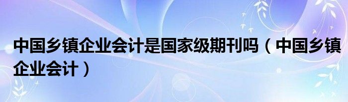 关于中国乡镇企业会计是国家级期刊吗,中国乡镇企业会计这个很多人还不知道,今天菲菲来为大家解答以上的问题,现在让我们一起来看看吧!